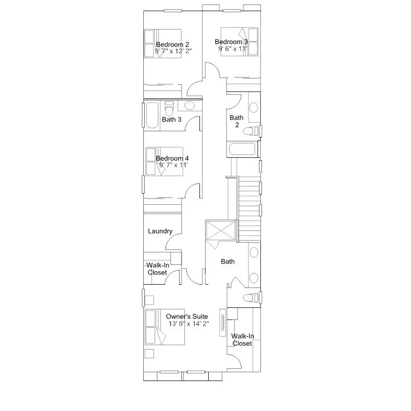 The first floor of this new two-story home is host to an inviting open floorplan that combines the kitchen with the living and dining areas. Four bedrooms can be found upstairs, including the owner’s suite, complete with an en-suite bathroom, dual walk-in closets and private balcony access.